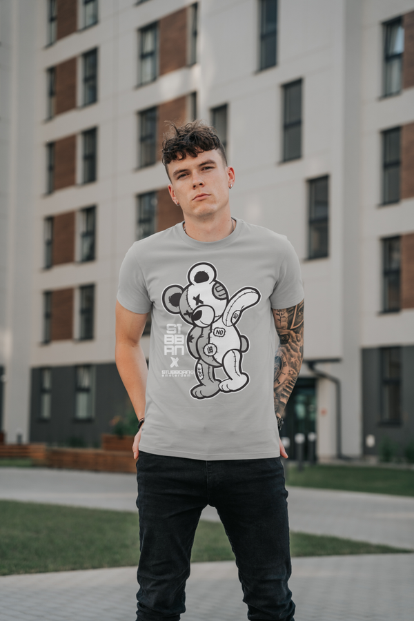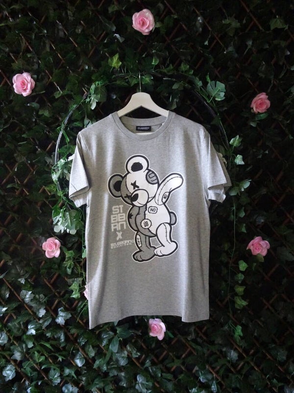 This design is screenprinted on a regular fit Unisex t-shirt with the "PATCHED BEAR" printed on the front.